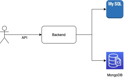 The client invokes the API; the payload reaches the backend, and the backend is trying to store the data in MySQL and MongoDB. The backend successfully stores the data in MySQL, but the backend cannot access MongoDB due to a temporary network failure.